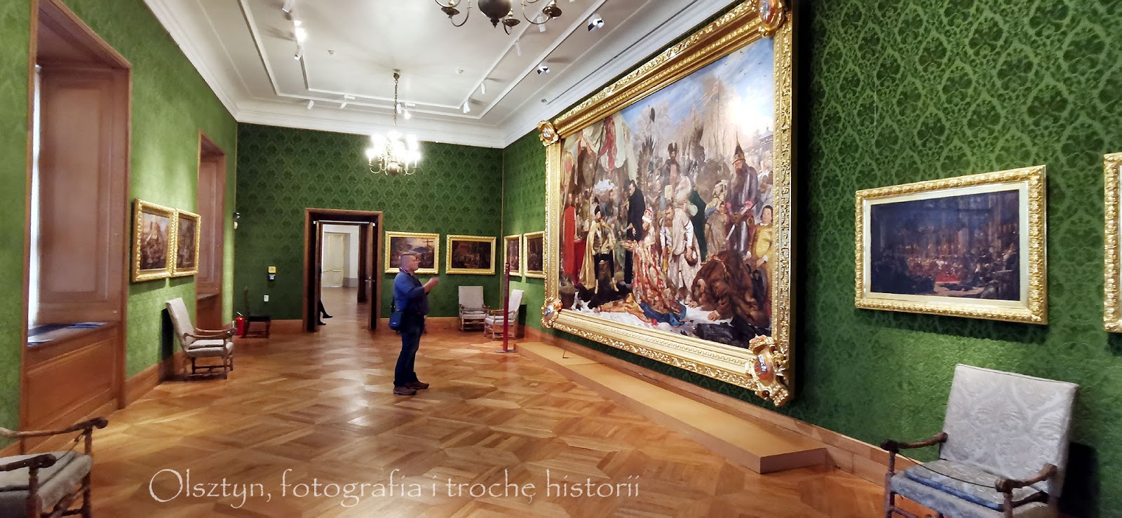 Dopiero później, już we wrześniu tego roku, udało mi się zobaczyć oryginalny obraz na Zamku Królewskim w Warszawie. Muszę przyznać, że "w realu" obraz robi ogromne wrażenie, zdecydowanie większe niż na słabej jakościowo pocztówce - szczególnie rozmiary obrazu i precyzja z jaką autor oddał szczegóły ubiorów poszczególnych postaci. Warto się wybrać i zobaczyć na własne oczy. Wstyd się przyznać - tyle razy byłem w Warszawie, a na Zamek Królewski zawitałem w tym roku po raz pierwszy w życiu.